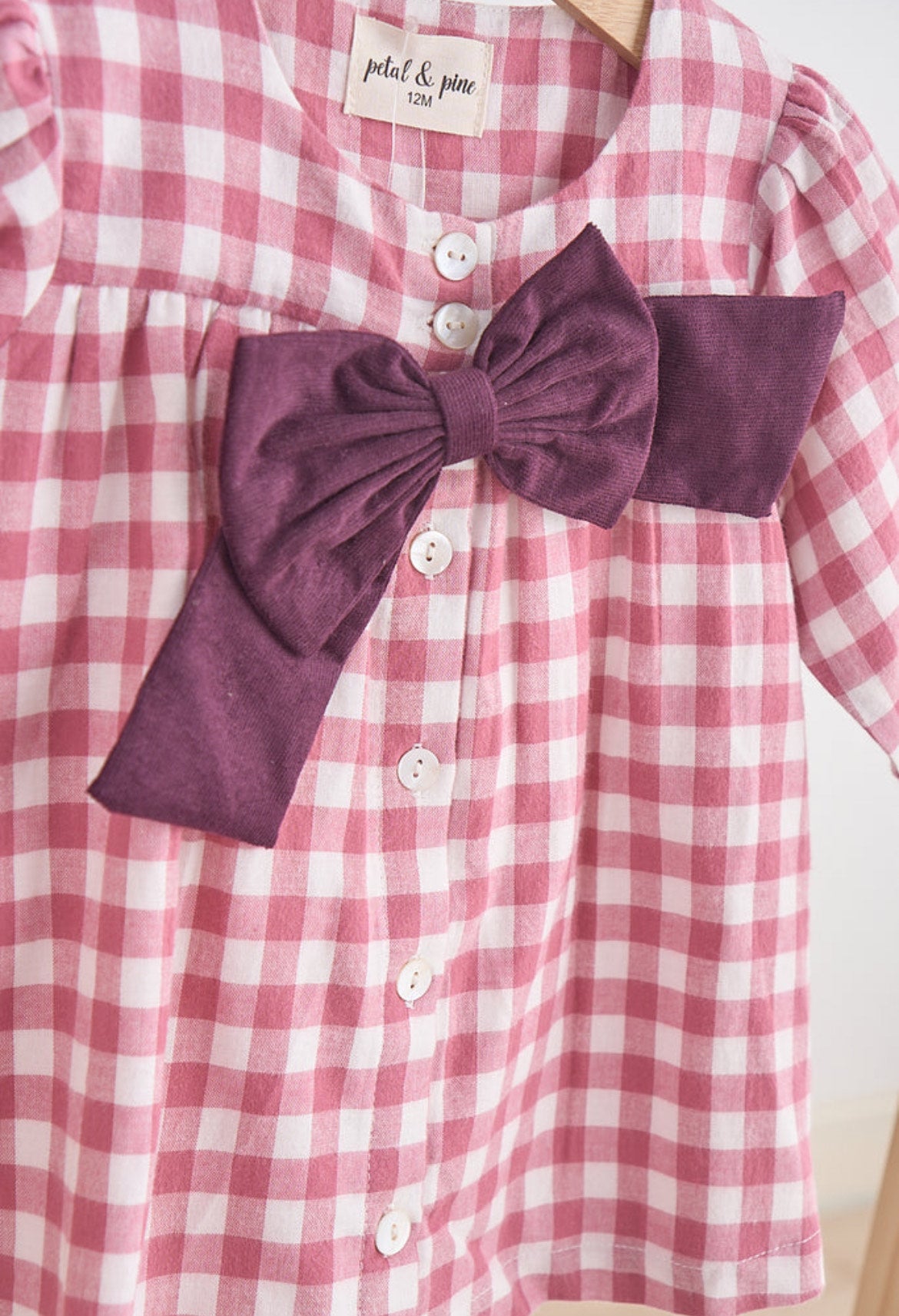 Pink Gingham Flannel Bow Dress